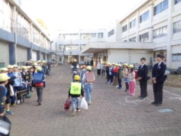 今朝は、小学校の校門に中学生のお兄さん・お姉さんが立ち、小学生と一緒に元気なあいさつを交わす姿が見られました。これは、地域の中学校と連携して行っている「あいさつ運動」の一環です。