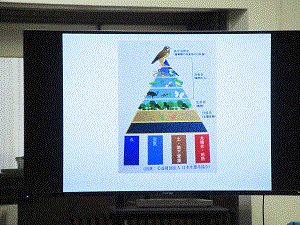 まずは、動画を通して、「おおたかの森トラスト」の生態系再生の取り組みについて紹介していただきました。かってゴミ捨て場だった土地が、「おおたかの森トラスト」の皆様や子供エコクラブの活動によって、豊かな森へと再生される様子を、子供たちは食い入るように見つめていました。「自分たちでも、豊かな自然を再生できる。」という思いをもてたようです。