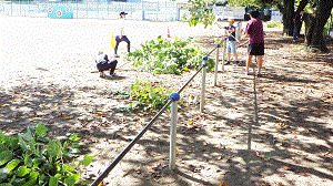 「ウラジロは、葉の裏が白くなっているよ。」、「アメリカセンダンは、茎から3つの葉が出ているね。」特徴をとらえては、夢中になって探していました。「雑草」とひとくくりにするのではなく、どの草にも名前があり、特徴があることがわかります。外来種、在来種という観点で身近な自然を見つめる目も育ちます。