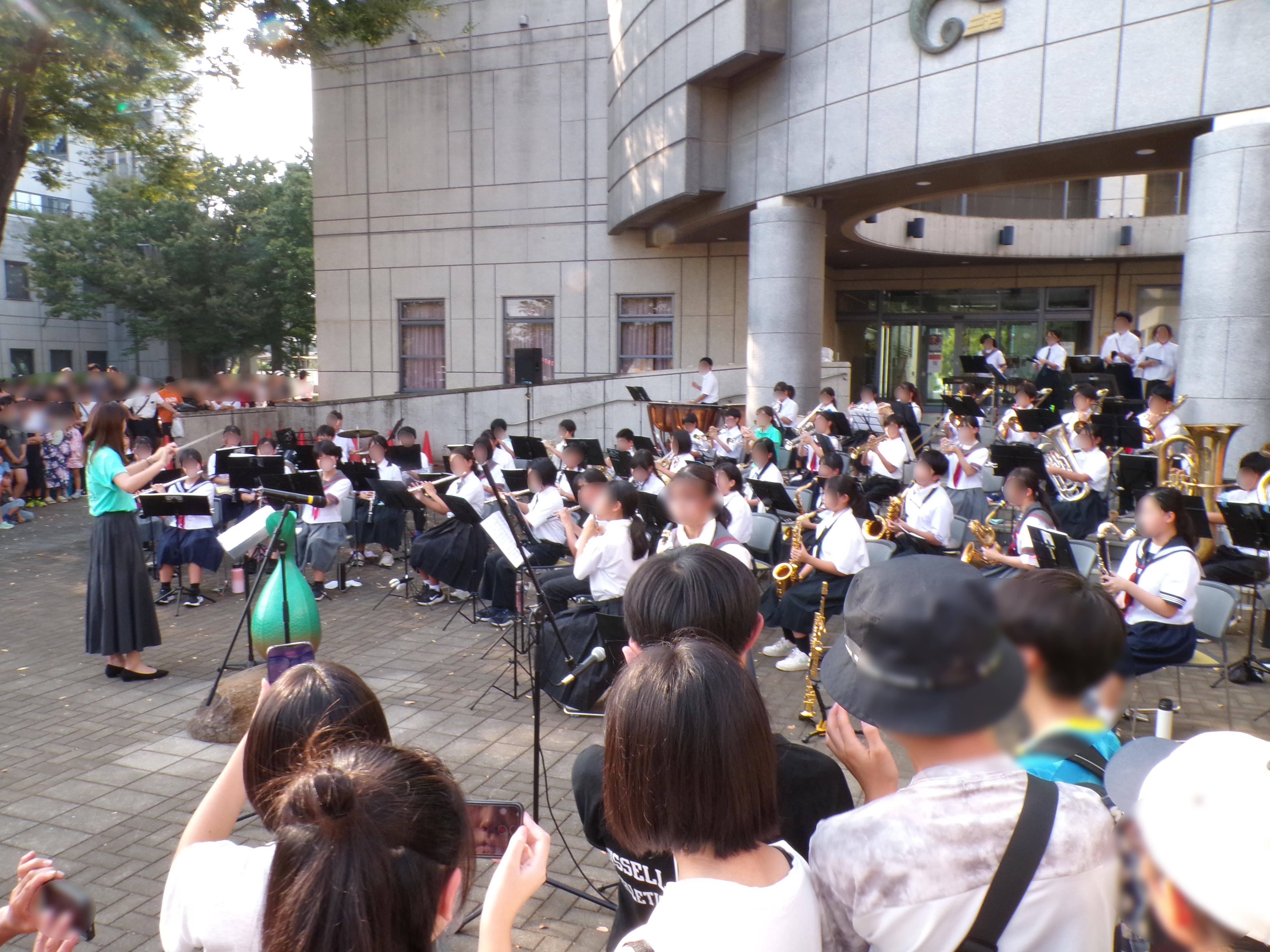 - R7 吹奏楽部みよしまつり出演(R7.09.07) 吹奏楽部が今年度も「みよしまつり」に出演し、演奏を披露してくれました。今年度は、三芳中学校・三芳東中学校と合同での演奏でした。