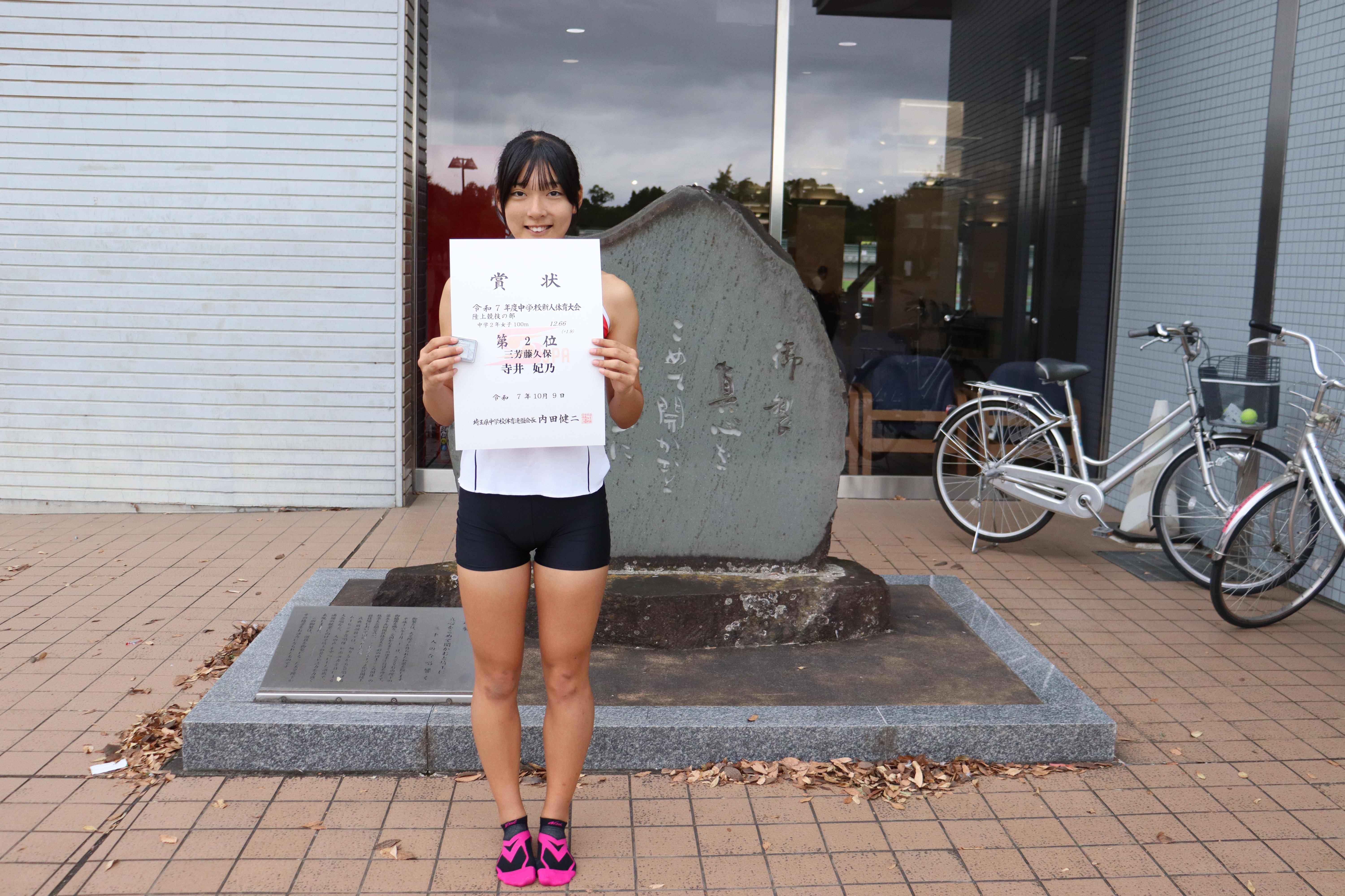 - 2年生の寺井妃乃さんが2年女子100mで県大会準優勝を果たしました。
