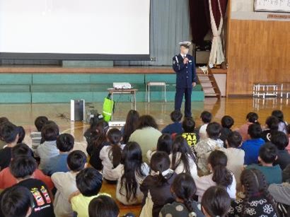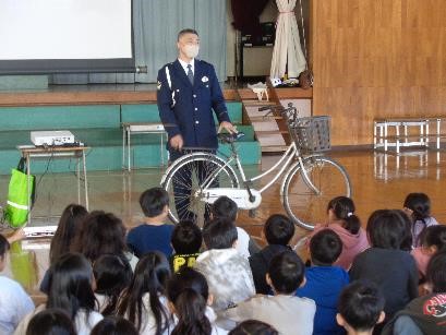 子どもたちは、真剣に話を聞き、時折大きくうなずいていました。安全な自転車利用は、子どもたちの命を守るために欠かせません。ご家庭でも、ヘルメットの着用や自転車の点検について、声かけ・確認をお願いいたします。