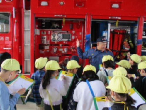 特に、消防車を見せてもらったときには、「こんなにたくさんの道具があるんだ!」と驚きの声があがり、実際にホースや防火服を触らせてもらった子どもたちは、とても感動していました。