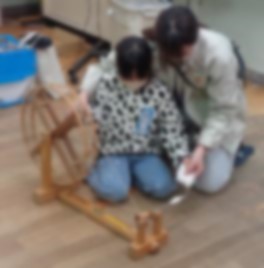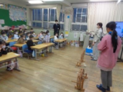 今日は、町役場の方にご協力いただき、1年生が国語で学習している「たぬきの糸車」にちなんで、本物の糸車を学校に持ってきていただきました。子どもたちは、教科書でしか見たことのない糸車が目の前で「カラカラ」と音を立てて回る様子に、目を丸くしてじっくり見入っていました。実際に糸が紡がれていく様子を見ながら、「昔の人はこうやって糸を作っていたんだ」「たぬきもこんなふうに回したのかな」と、物語と現実を結びつけて考える姿が印象的でした。教科書の世界が実物体験によって広がり、子どもたちの学びがより深まった一日となりました。