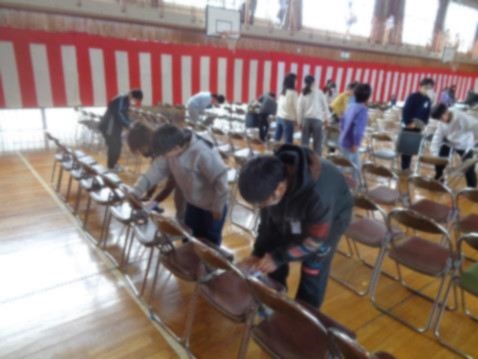 本日、5年生が卒業式に向けて会場づくりを行いました。