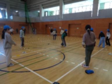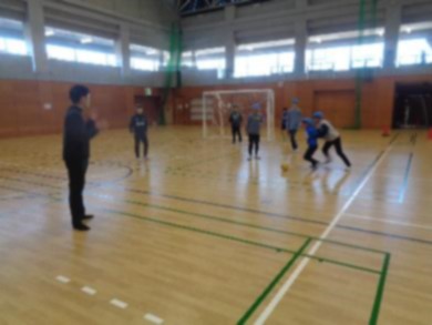 今朝は雪まじりの雨となり、予定していた三芳町総合運動場での活動は、安全面を考慮して急遽、総合体育館で行うことにしました。
