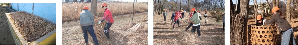 1月18日 4年生が堆肥をつくるため、落ち葉はきをおこないました。