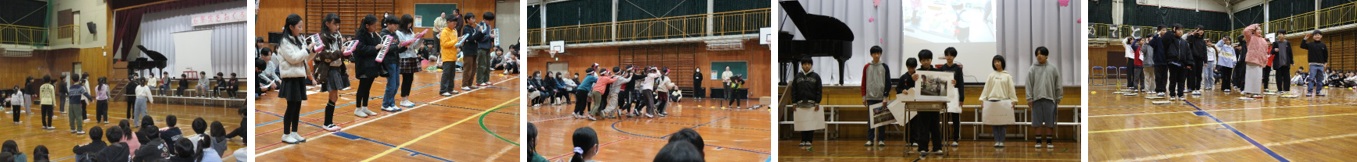 代表委員の児童が、司会となり上手に進行してくれました。上級生の歌や2年生からのプレゼントに1年生みな喜んでいました。縦割りでのじゃんけん列車も大いに盛り上がりました。