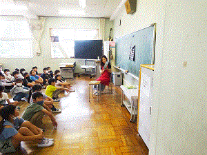 学校応援団・よむよむポケット 4年読み聞かせ よむよむポケットの皆様には、毎月1回、金曜日の朝読書の時間に読み聞かせをしていただいています。本日から今年度の読み聞かせが始まりました。今日は4年生への読み聞かせでした。みんな本の世界に引き込まれています。 よむよむポケットの皆様、一年間よろしくお願いします。