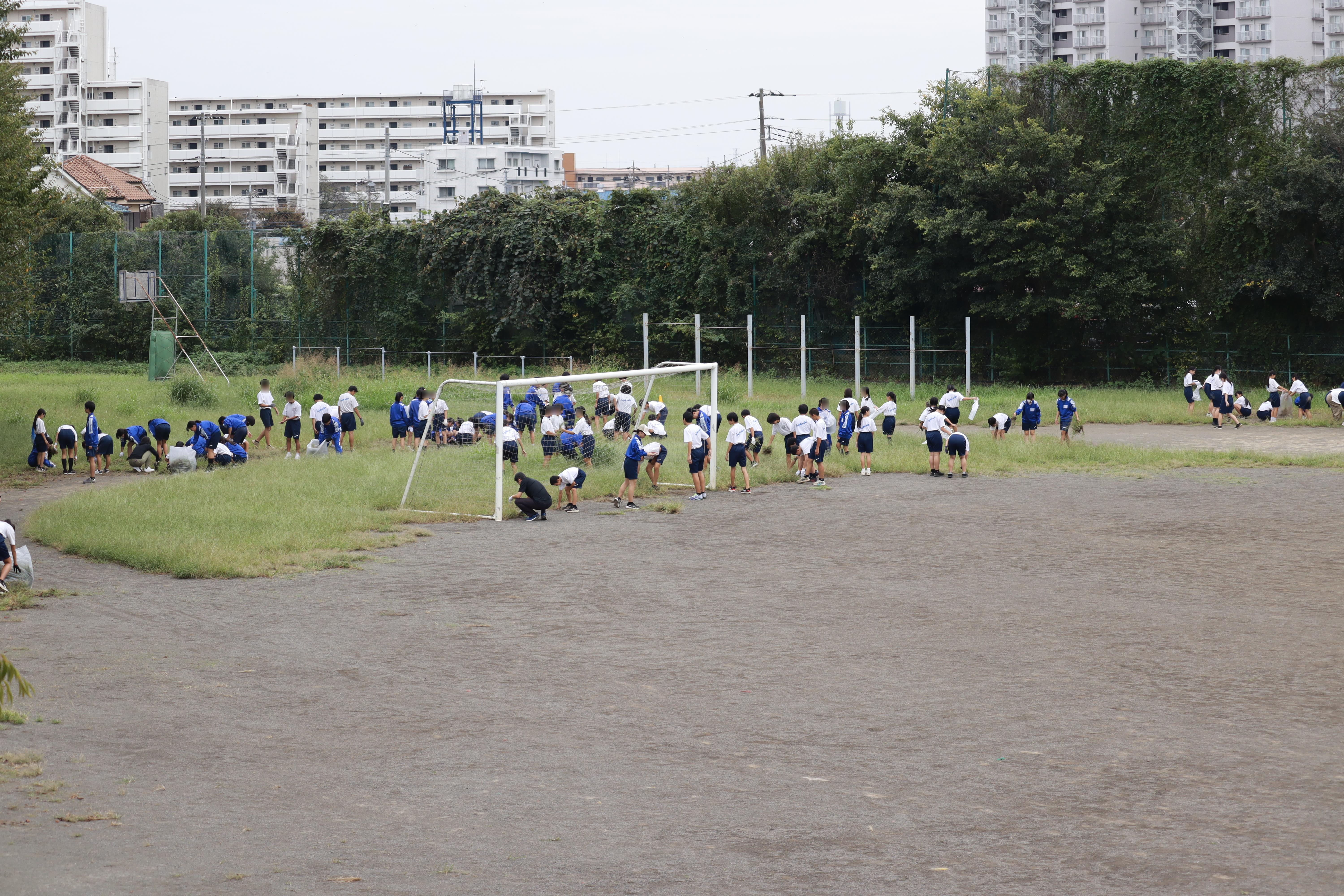 - 除草作業(R7.10.03) 本日で中間テストが終わり、全校生徒で除草作業を行いました。